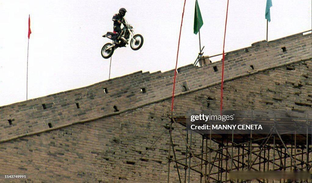 1993年5月11日,英国特技摩托车手埃迪·基德飞跃了长城的司马台段。基德不仅完成了他最危险的一次跳跃,还在5月9日在北京跳过了10辆公交车,创造了世界纪录。