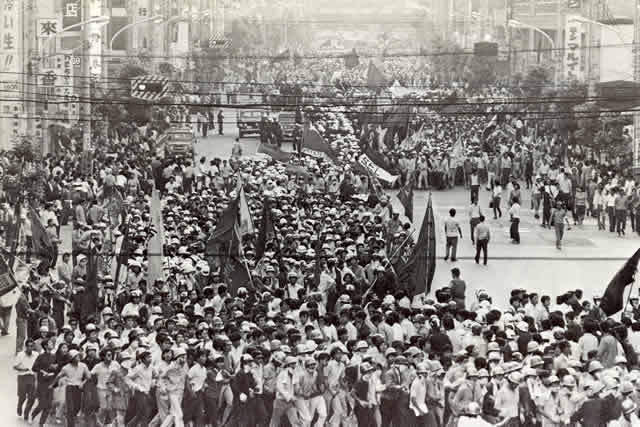 日本“文化大革命”,是在中国文化大革命同时期日本也发生一场反对美帝国主义颂扬毛泽东思想的文化大运动,在日本被称为左翼运动。1960年日本20岁左右的青年充满革命激情,他们高举者毛泽东思想的横幅和画像,表情庄严地进行着游行运动,高呼反美口号,行走在东京、京都、大阪和冲绳的大街小巷。