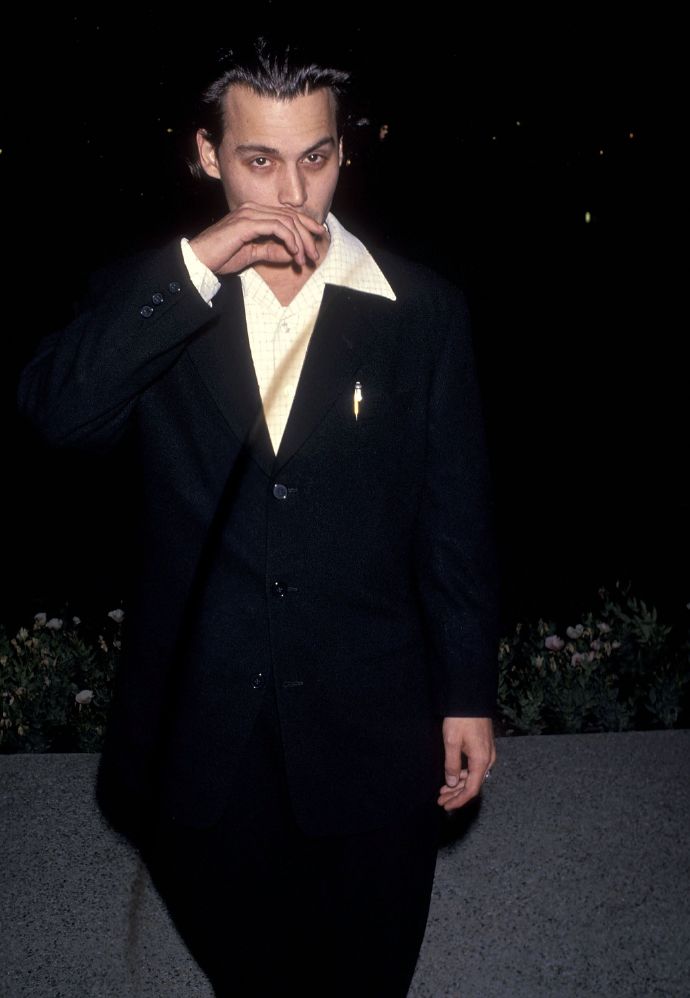 1993年12月12日,出席电影《不一样的天空》首映礼的约翰尼·德普