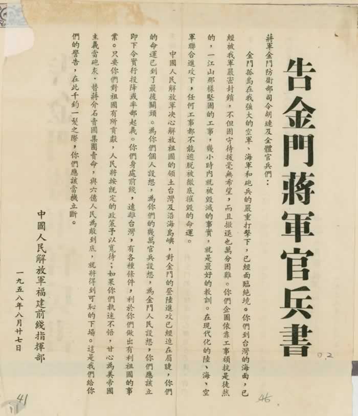 上世纪祖国大陆向台湾地区空投宣传单