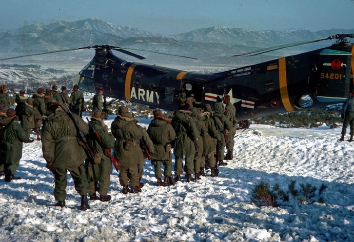 1964年,韩国东豆川市,驻韩美军第7步兵师的冬季军事演习老照片相关链接: