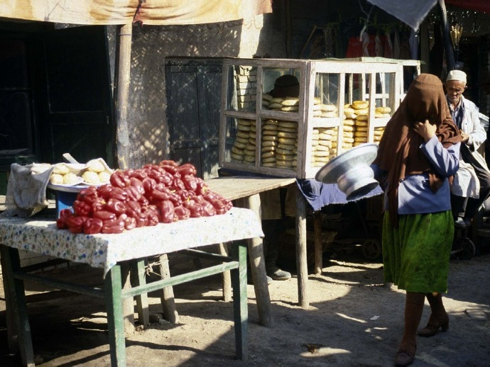 > 1986年的新疆喀什,摄影:John Mawer