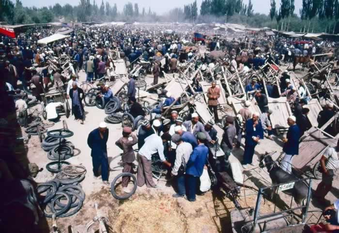 > 1988年新疆喀什集市,摄影:Ben Howe