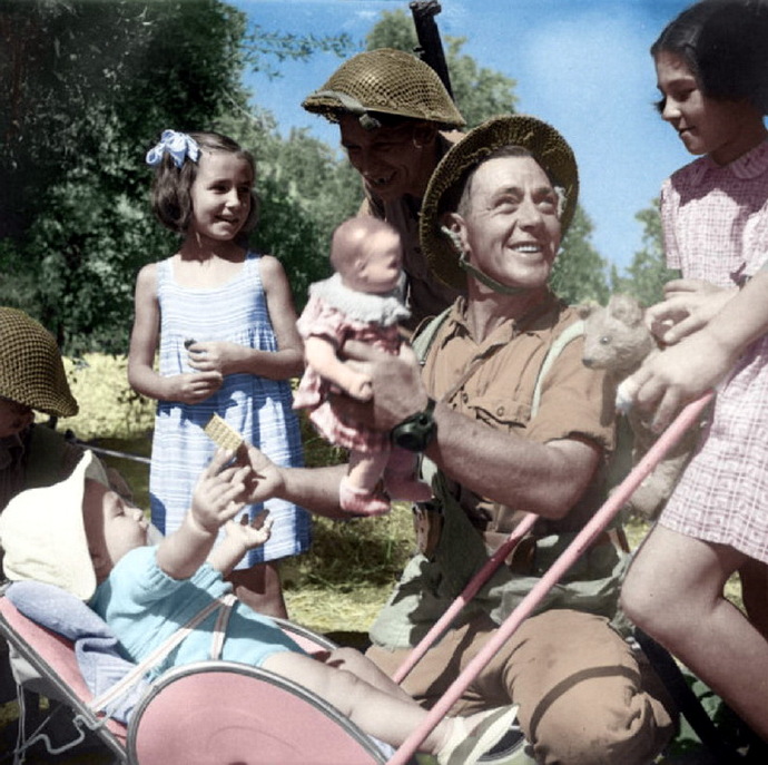 二战期间盟军士兵与孩子