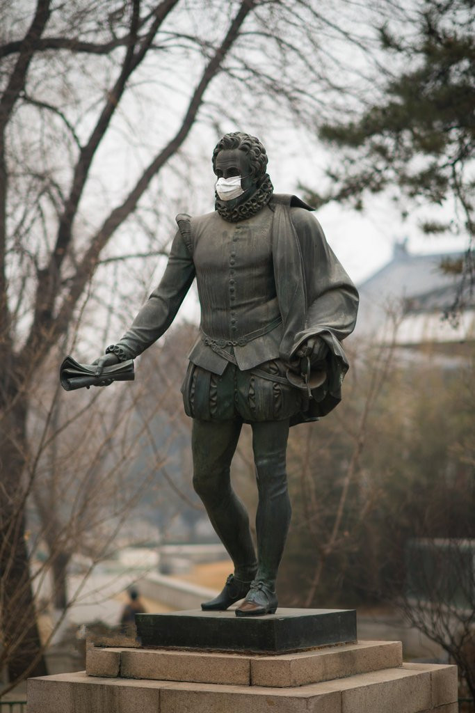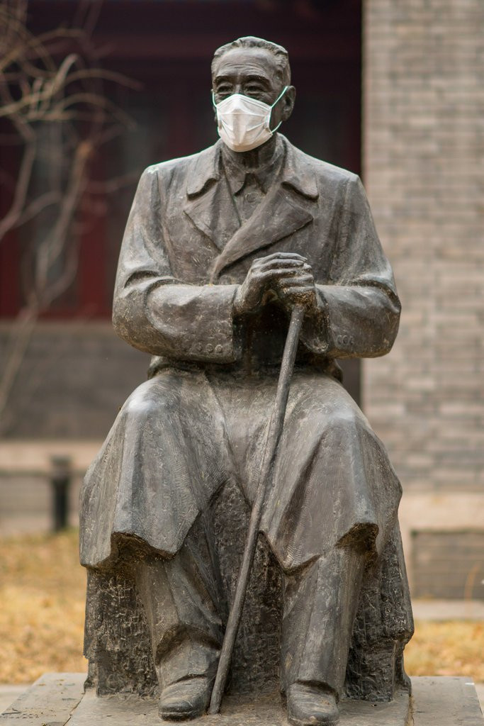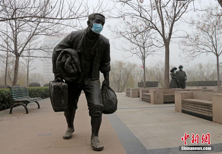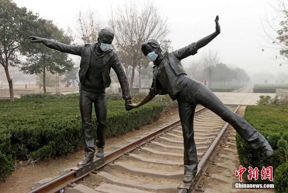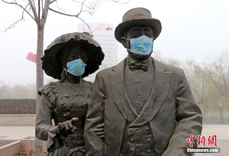 2013~2014年因为雾霾很多雕塑被戴上了口罩