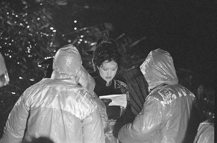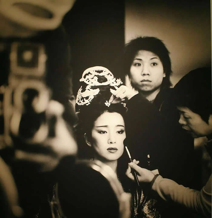90年代,巩俐在片场化妆