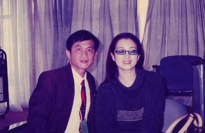 多年前,巩俐获得“往届学生学院奖”,梁伯龙获得优秀教师奖后的合影