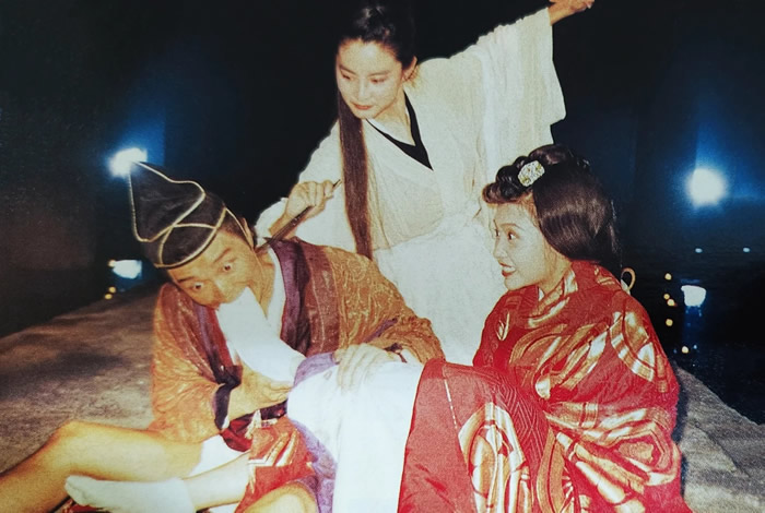 1992年电影《鹿鼎记Ⅱ:神龙教》拍摄片场的邱淑贞、林青霞、周星驰