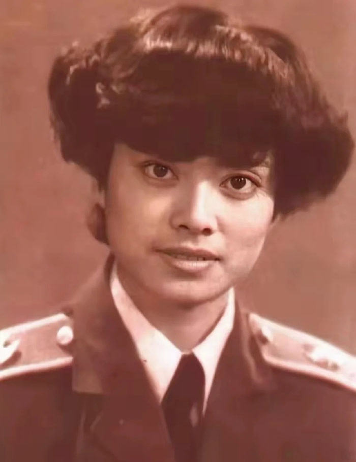 毛阿敏在 1985 年 3 月特招入伍,进入南京军区前线歌舞团任独唱演员,直到 1989 年才调入总政歌舞团,这张军装照就拍摄于这段服役期间。