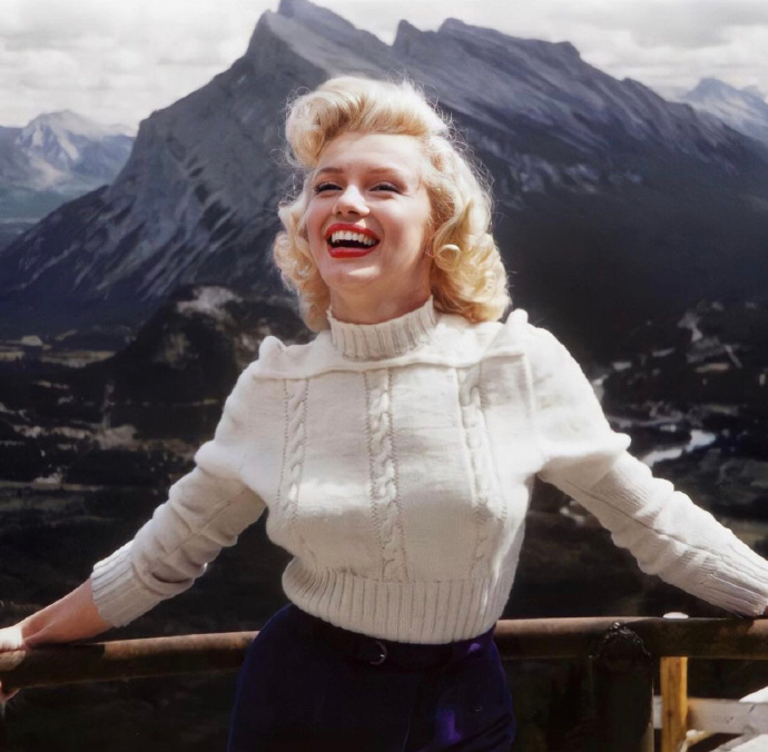 1953 年,玛丽莲·梦露在拍摄《不归之河》的外景地。