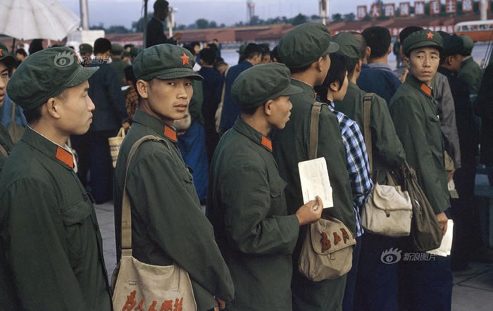 文革十年是中国服装史上独具审美倾向的十年,蓝、灰、绿一统天下。穿绿军装、戴绿军帽、挎“为人民服务” 包,是时尚标签,应了毛泽东那句“中华儿女多奇志,不爱红装爱武装”。图为1973年天安门广场上的空军,他们的装束被认为是当时的时尚。