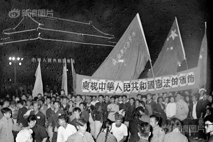 “七五宪法”带有明显的“文革”色彩。比如,第十三条规定,大鸣、大放、大辩论、大字报,是人民群众创造的社会主义革命的新形式。比如,在这部宪法中出现的新词“革命委员会”。指导思想偏离轨道,这也意味着“七五宪法”拥有“与生俱来”的缺陷。图为1975年1月,乌鲁木齐市各族居民在学习四届人大通过的宪法。
