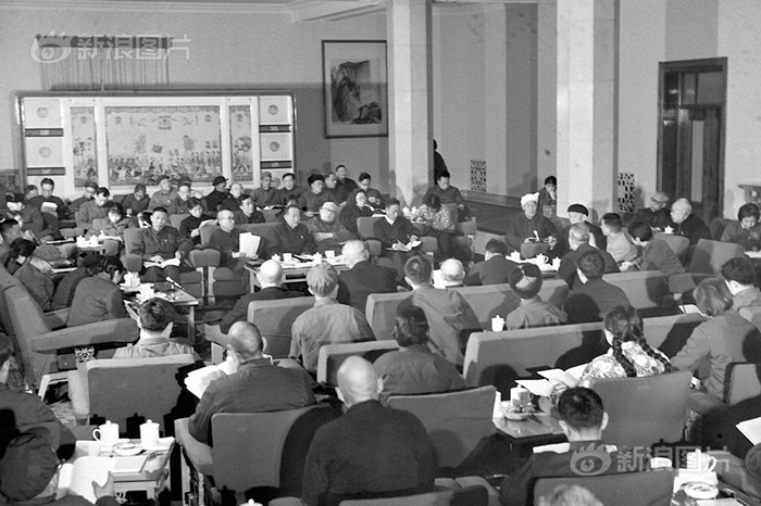 1978年3月5日,第三部宪法由第五届全国人民代表大会第一次会议通过。除序言外,共4章60条。图为1978年3月2日,人大代表分组讨论宪法修改草案和修改宪法报告。