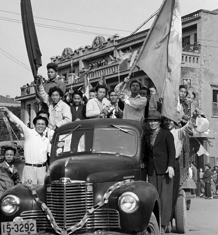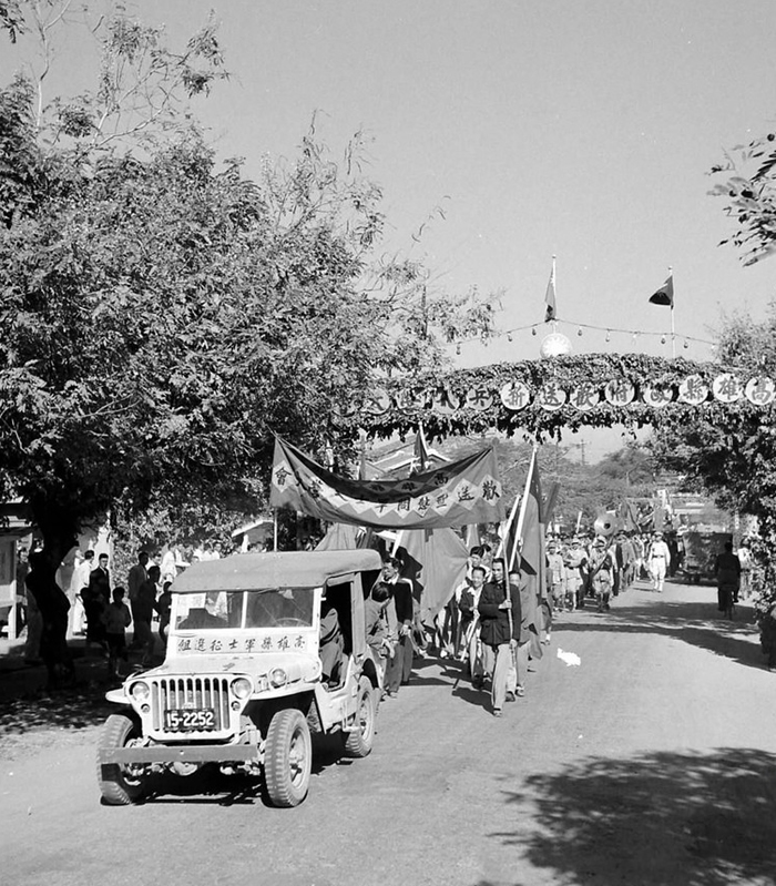国民党军队新兵应征入伍街头游行造势,台湾1950年。
