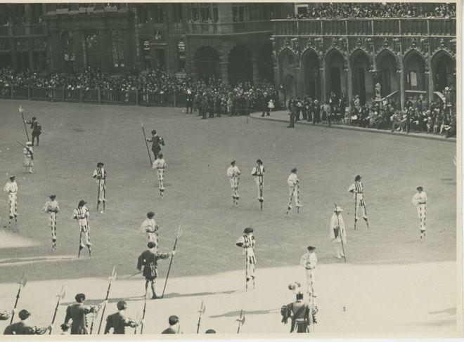1935年,比利时首都布鲁塞尔的游行“Ommegang”,“Ommegang”从古佛兰德语翻译过来就是“圆圈游行”。整个活动,表演者都会穿着盛装出场,盛会以贵族后裔的落座为开场,随后有音乐、舞蹈、马车巡游等表演。