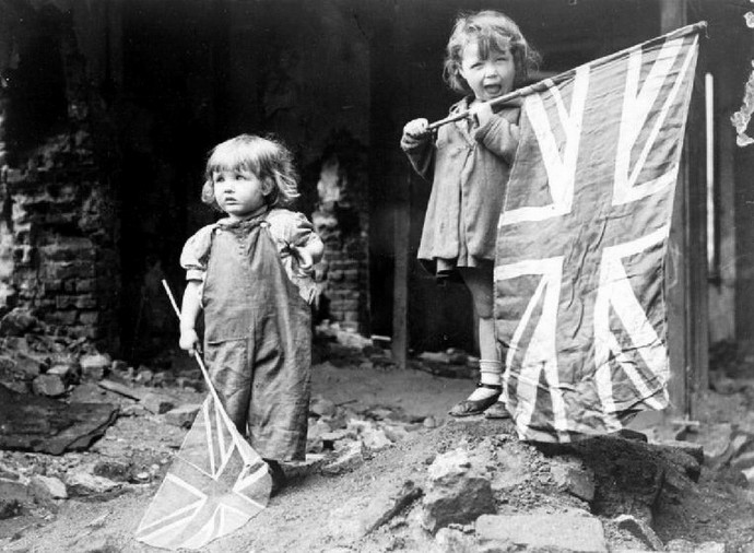 1945年,伦敦,二个小女孩在庆祝欧洲胜利日