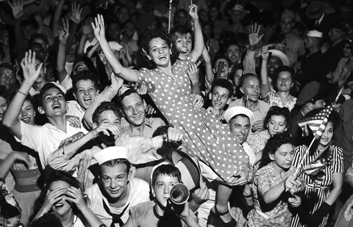 1945年日本投降后,纽约街头狂欢的人群