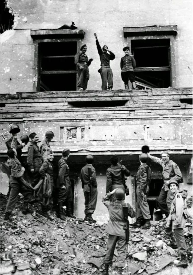 1945年,盟军士兵占领帝国总理府嘲笑希特勒