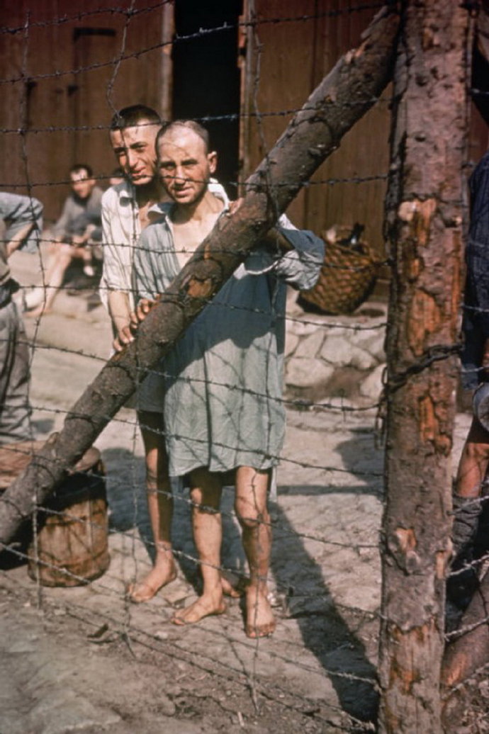 1945年,布痕瓦尔德集中营,铁丝网内的囚犯