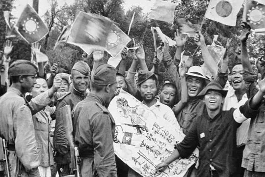 1945年9月,奉天(沈阳)民众正在欢迎苏联红军的到来。