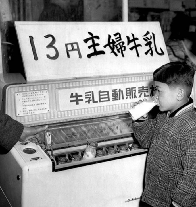 1958年,日本大阪的自动牛奶贩卖机