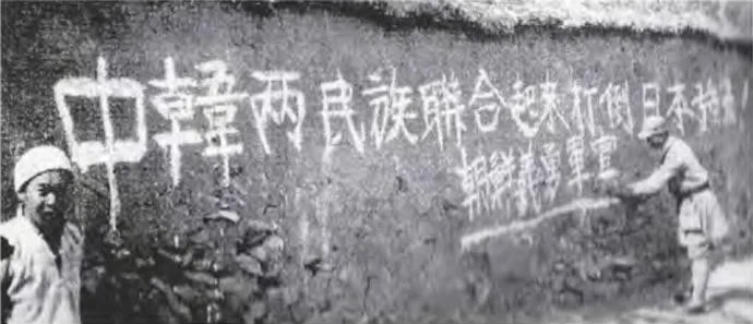 1938年,武汉会战期间,在华朝鲜义勇军书写的标语。