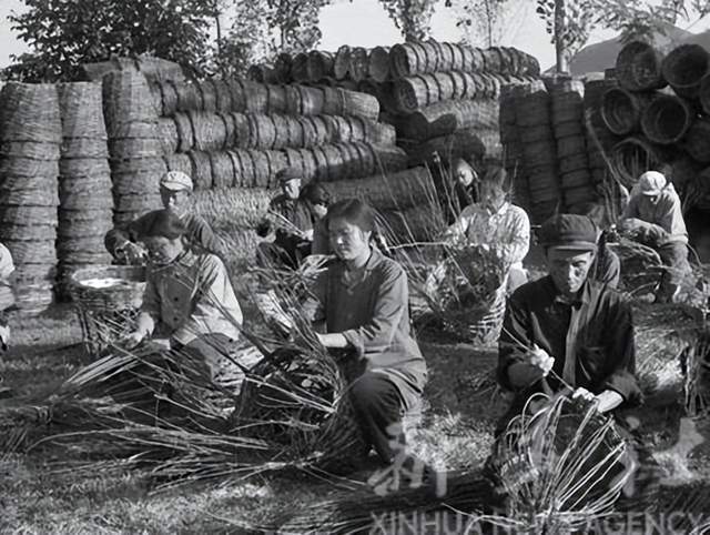 1972年,迁西县南观公社后铺大队组织社员利用荆条编筐,为扩大农业生产积累资金。