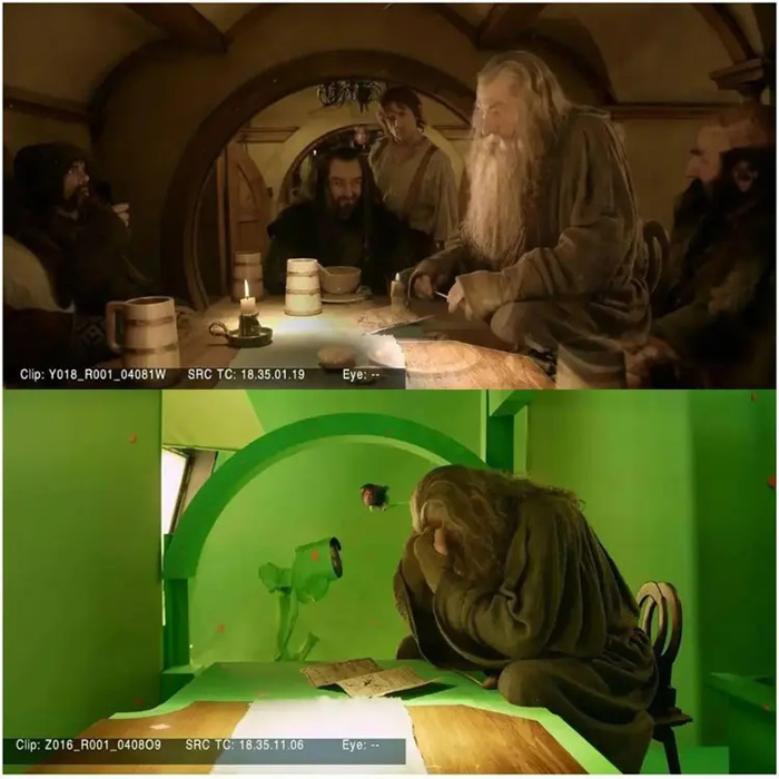 《霍比特人》中,甘道夫和矮人、霍比特人同框的镜头,其实都是分开拍摄的,伊恩麦克莱恩老爷子也是对着空气飙戏,经常在片场崩溃的不行…
